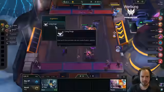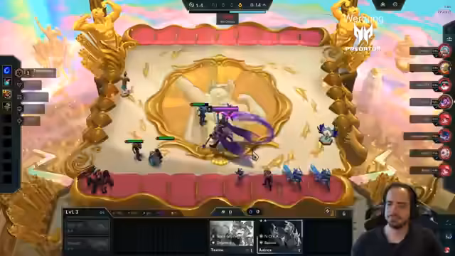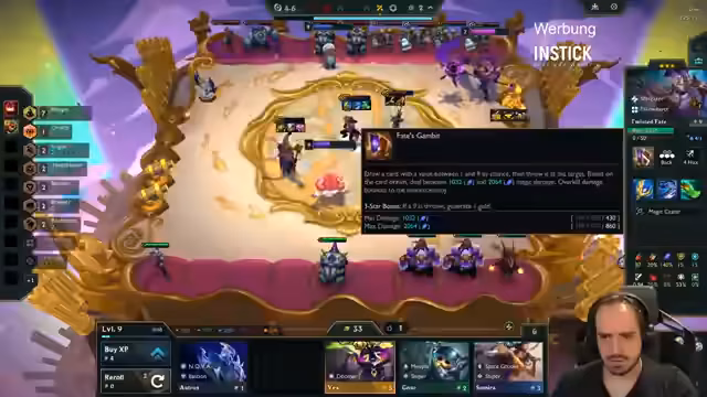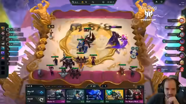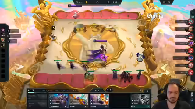 03:29:21Im weiteren Verlauf des Spiels wird Coinits Board durch mehrere Runden hindurch kommentiert. Er entfernt die Poppy vom Board und verliert infolgedessen den ersten Fight, was ihn in eine schwierige Position bringt. Seine Versuche, seine Upgrades wie den Twisted Fate und den Jax zu vervollständigen, sind kostspielig. Gleichzeitig ist der Gegner Philop auf 1 HP, hat aber immer noch die Chance, das Turnier zu verlängern, indem er die nächsten beiden Fights gewinnt.