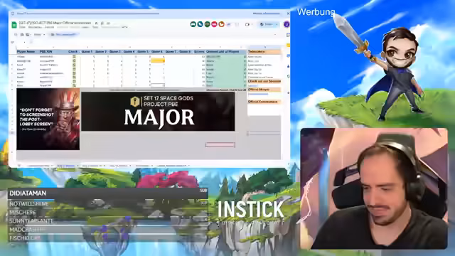 03:16:21Der Stream beginnt mit der Ankündigung des sehr wahrscheinlich letzten Game von Project PBE im neuen Set. Nach einem doppelten Countdown für das Spectate Game und einen kurzen Kommentar zur Müdigkeit des Streamers wird das finale Spiel gestartet. Die Lobby besteht aus 8 Teilnehmern, 6 davon stehen auf Checkmate. Coinet, der zweite Europäer im Turnier, wird als Favorit für den Titel Champion von Project PBE genannt.
