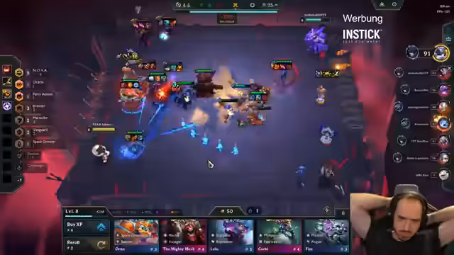 04:09:21Im weiteren Verlauf des eigenen Spiels steht das Management der Items und die Entscheidung über den Fokus der Komp im Mittelpunkt. Der Streamer rollt gezielt nach wichtigen Nova-Items und Einheiten wie der Orphnova. Es wird diskutiert, wie die Items am besten verteilt werden können, um Schaden zu maximieren. Die Entscheidung, Bruiser-Items für Master Yi oder Fiora zu nutzen, wird als Teil eines flexiblen Ansatzes gesehen, der stark von den erhaltenen Items abhängt.
