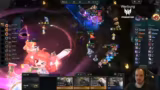 01:49:19Es finden mehrere Kämpfe statt, die über das weitere Schicksal im Turnier entscheiden. So wird ein starkes Frasier-Board eliminiert und ein anderer Spieler mit einem Mech-Ornn-Konstrukt überzeugt. Gleichzeitig muss Coinit pivotieren, da wichtige Units verloren gehen und die Angriffe auf die gegnerische Backline trotz guter Positionierung scheitern.