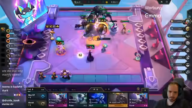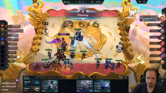 02:09:45Nachdem der She-Graz-Sucher platziert wurde, zeigt sich Tendenz für einen Mordekaiser, der Blau-Items erwarten kann. Die Entscheidung gegen eine Wealth-Quest wird begründet. Die Win Streak, die Gold bringt, wird als wichtige Ressource genutzt. Der Maokai wird als potenzielle Ergänzung betrachtet, doch die Items sind dafür unzureichend. Die Richtung tendiert entweder zu Viktor oder zu LeBlanc, je nachdem, welche Champions getroffen werden. Contested Units wie Winstreak-Diana werden im Auge behalten, da sie als Secondary-Carry funktionieren können.