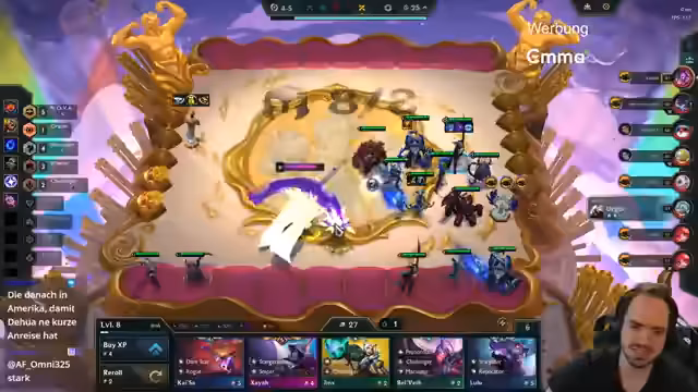 00:14:44Nach einigen Runden steht Coinit vor einer strategischen Weichenstellung. Die Medallion-Strategie scheint ihm nicht mehr zusagen, er hat den Reroll abgelehnt. Der Streamer interpretiert dies als Zeichen, dass Coinit nun ein Level-Up auf Level 8 anpeilt. Die bisherige AP-Line (um Nami und Karma) wird als zu schwach eingestuft. Stattdessen wird die Transition zu einer Lichbane-Variante favorisiert, bei der Lulu mit Replicators eine wichtige Rolle spielt. Der Streamer betont, dass diese Variante starke Frontline-Einheiten wie Lee Sin und Riven erfordert und hervorhebt, dass Coinit ohne sein gewünschtes Mana-Rack-Artefakt auskommt, was den Wert von Lichbane reduziert.