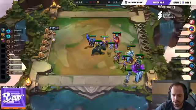03:29:38Yamato hat eine beeindruckende Leistung gezeigt, indem er sein Level-10-Board mit einem Edge-Lord-Emblem und Infinity Edge auf Seraphine finalisiert. Er verliert den Fight knapp gegen Wettjungler, sichert sich aber dennoch einen Platz in den Top 4 und qualifiziert sich somit für den Finaltag. Ebenso klar ist die Qualifikation für Wettjungler, der mit einem starken Gwen-Board gewinnt und ebenfalls die notwendigen Punkte für den Finaltag sammelt. Beide Spieler zeigen exzellentes Gespür für ihre Builds und eine souveräne Spielweise.