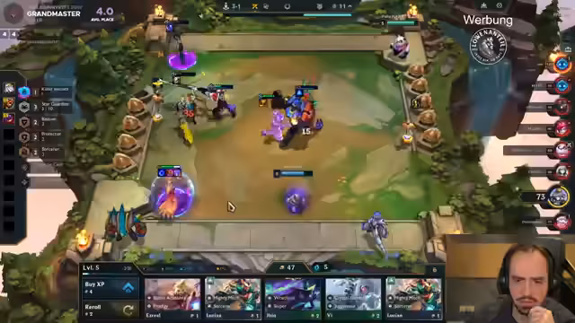 03:10:50Löscher ist auf 51 HP gefallen und kämpft um sein Überleben in der EM-Qualifikation. Er muss sich nun für eine Finales Variante entscheiden und signalisiert, dass er Xayah/Rakan bis zum Ende spielen wird, unabhängig davon, ob die Gegner unterbieten. Er hat mit einem gut ausgestatteten Mizer 2-Stars auf Level 4 eine solide Basis, obwohl sein erstes Match-up verloren ging. Sein Ziel ist es, Top 4 zu erreichen, um die Qualifikation für den Finaltag zu sichern, nachdem er am Vortag bereits sehr knapp qualifiziert wurde. Die Situation ist extrem prekär, und er braucht dringend einen Sieg.