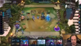 01:03:44Ein zentrales Thema ist das korrekte Management der Artefakte. Der Streamer diskutiert, ob man ein Artefakt sofort lösen oder bis zu Runde 4-1 warten sollte, um bessere Chancen auf ein hochwertiges Artefakt wie Blighting Jewel zu haben. Währenddessen spielt Faso weiter sein Mighty-Mag-Board mit Keepers, während Vega seine Champions und Items neu verteilt. Eine besonders starke Combo wird entdeckt: Mana Zane gibt extrem viel Mana nach dem ersten Cast, Dawn Core reduziert die Manakosten und Blighting Jewel gibt bei gegnerischem Mana-Mangel unendlich Mana, was einen hybriden Build ermöglicht.