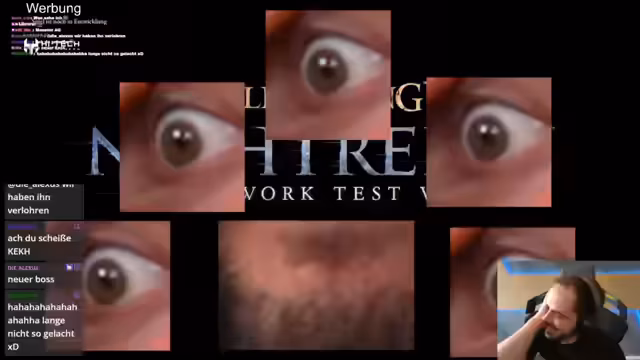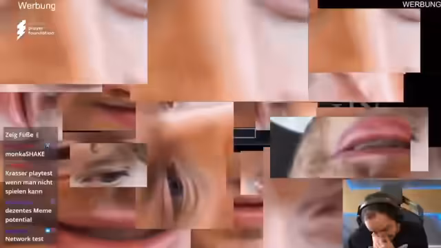 01:32:56Nach verschiedenen vergeblichen Versuchen, Elden Ring Nightreign zu spielen, entschließen sich die Streamer für eine konkrete Kooperation. Der dritte Streamer Sebastian wird eingebunden und eine neue Monster-AG geplant, bei der Körperteile aller drei Streamer kombiniert werden sollen. Dieses Vorhaben erweist sich als äußerst komplex und führt zu weiteren surrealen visuellen Eindrücken, insbesondere als Johnnys Mund mit Sebastians Auge kombiniert wird und völlig abseitige Fratzen entstehen.