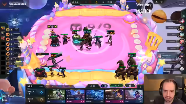 03:42:10Die fünfte Runde beginnt mit einer sehr starken Lobby-Besetzung, in der Bröcki weiterhin um den Einzug in Tag 2 kämpft. Die Spieler zeigen beeindruckende Starts, wie etwa 'Stars Are Born' für sofortige Upgrades oder 'Demacia Forever' für mächtige Embleme. Besonders Bröcki überrascht erneut mit kreativen Item-Kombinationen auf Diana und Ari, was ihm eine dominante Position in der Stage verschafft. Die Komplexität der Boards nimmt zu, da Augments wie 'Invested Void' oder 'The Trade Tree' extrem starke End-Game-Szenarien ermöglichen, die selbst erfahrene Beobachter in Erstaunen versetzen.