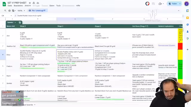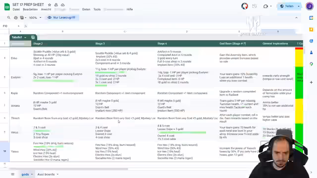 00:04:24Der Streamer stellt den Hauptfokus des Streams vor: die neue Set-Mechanic mit Göttern und ihren Auswirkungen auf das Gameplay. Er hat drei Coaches eingeladen, darunter Nilo, der eine detaillierte Übersicht in Excel mitgebracht hat. Nilo erklärt, dass Götter zwar den Gameplan beeinflussen können, aber Priorität zunächst auf den Ordner und den Early-Shop gelegt werden sollte. Er geht auf die verschiedenen Götter und ihre spezifischen Mechaniken ein, wie z.B. bei Aurelion, der die Möglichkeit bietet, mit bestimmten Quests Embleme zu erhalten. Er betont die Flexibilität bei der Auswahl der Götter und wie diese die Spielweise beeinflussen können.