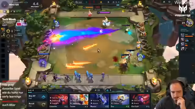 03:04:07Zu Beginn des Streams konzentriert sich der Streamer auf das Spiel TFT und analysiert seine aktuelle Positionierung und Strategie. Er bemerkt, dass er尽管 viel AP gesammelt hat, zu lange passiv gespielt hat, was ein Fehler ist. Er betont, dass die Top 100 in Europa alle sehr gute Spieler sind und er aggressiver spielen muss. Er diskutiert verschiedene Units wie Blitzkrieg und Lulo und stellt fest, dass ihre Positionierung im Kampf entscheidend ist. Der Streamer kritisiert sich dafür, nicht früh genug auf Siegchancen zu setzen und analysiert die Spielzweise seiner Gegner.