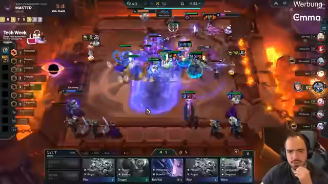 03:48:11Im späteren Spiel konzentriert sich der Streamer auf seine Positionierung und die Zusammensetzung seiner Einheiten. Er beschließt, Level 8 zu überspringen, um in der nächsten Runde auf Level 9 zu gehen. Er analysiert verschiedene Builds und entscheidet sich für Jax als Hauptunit mit Edge of Night und anderen Items. Der Streamer diskutiert die Vor- und Nachteile verschiedener Combos wie No Scout und Pivot und stellt fest, dass seine aktuelle Line stark ist. Er erwähnt auch seine Platzierungen im Boxbox Bootcamp und seine aktuellen LP.
