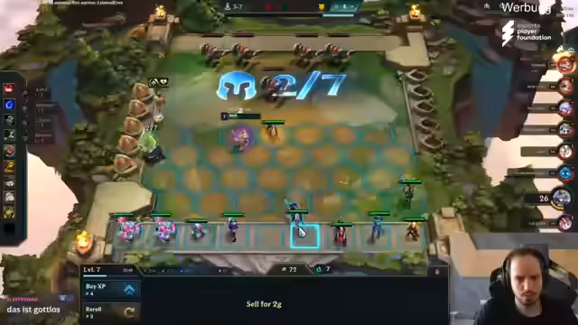 00:07:49Das Spielverhalten fokussiert sich auf das Finden und Erreichen starker Spots für Champions wie Graves und Anima-Squad. Der Streamer experimentiert mit verschiedenen Item-Kombinationen, z.B. versucht er, Windstreak und andere wertvolle Items zu bauen. Die Analyse der Gegner-Boards ist entscheidend, um Entscheidungen für das Leveln, Rollen und Items zu treffen. Ein zentrales Thema ist der Umgang mit Runden, in denen man auf Win-Streak ist, und die Entscheidung, wann man diese für Geld nutzt oder weiter auf das Risiko einer Siegesserie setzt.