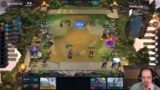 02:13:48Nach einem verlorenen Fight gegen KP wird der Fokus wieder auf Juggernauts gelegt, wobei ein weiterer Juggernaut gespielt werden soll. Die Situation ist komplex und erfordert eine Locke. Trotz des Versuchs, Poppy einzubauen, klappt es nicht. Der Power-Up auf Aatrox und die mangelnde Duelist-Einheit machen den Boardaufbau schwierig und fühl sich falsch an.