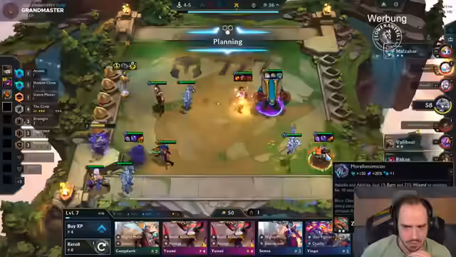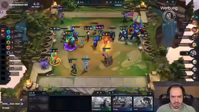 00:08:04Der Streamer analysiert Kämpfe im Detail, insbesondere gegen Starlords und andere Top-Bords. Es wird die Rolle von Xayah Shen und Reroll-Augments diskutiert. Die Item-Lösungen sind komplex; der Streamer erwägt, Noxious Trap auf Jinx zu legen, aber stellt fest, dass Juggernaut Lee Sin eine bessere Option sein könnte. Die Reroll-Strategie auf Level 7 wird kritisch betrachtet, da es wichtig ist, einen Shen zu finden. Die Hoffnung liegt auf einem Free Reroll pro Runde.
