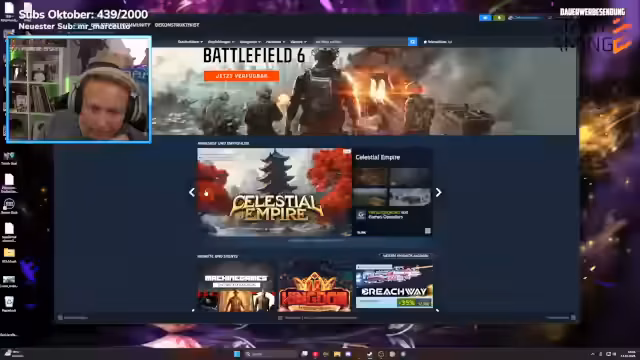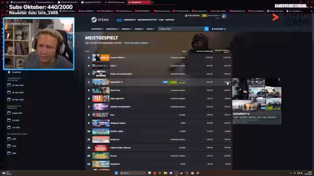 00:06:31Der Stream beginnt mit einer Begrüßung der Community, Muchachos, und dem Start in Battlefield 6. Der Streamer erkundigt sich, wer das Spiel bereits gespielt hat. Es wird ein Bug in der EA-App erwähnt, der den Launch am Vortag behinderte, der jedoch behoben sein soll. Als Wiedergutmachung für die betroffenen Spieler hat EA einen kostenlosen Season 1 Battle Pass sowie doppelte XP-Booster angekündigt. Die Spielerzahlen auf Steam werden mit bis zu 774.000 als beeindruckend bezeichnet.