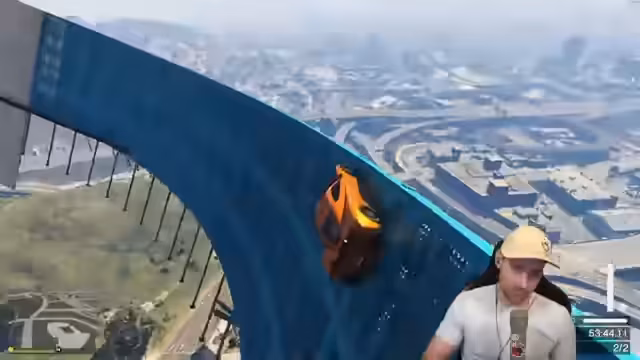 00:52:03Ein plötzlicher Regenfall in der GTA-Welt stellt eine erhebliche Herausforderung dar, da das Fahrverhalten sich durch die nasse Fahrbahn erheblich ändert und die Kontrolle über das Fahrzeug verloren geht. Der Streamer beschreibt, dass er sich unbeholfen und rutschig auf der Strecke fühlt und die Map dadurch viel schwieriger wird. Die Wartezeit darauf, dass die Fahrbahn wieder trocknet, wird als verschwendete Zeit betrachtet. Die Sonne kommt schließlich heraus, und der Streamer hofft, dass die restliche Strecke nun wieder befahrbar ist.