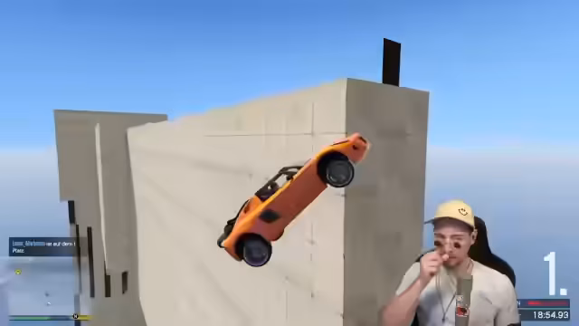 01:55:21Nach anfänglichen Schwierigkeiten gelingt es einem der Streamer, einen anspruchsvollen Sprung auf einer Rampe in einem Versuch zu schaffen. Der Streamer selbst schafft es schließlich auch, indem er auf die richtigen 'Auflader' aufmerksam wird und eine kontrollierte Landung hinlegt. Die Map wird als sehr fordernd, aber auch als krasse Parkour-Erfahrung beschrieben, die durch die Downflips eine Art Schulung darstellte. Das Streamende wird durch eine humorvolle Anekdote abgerundet.