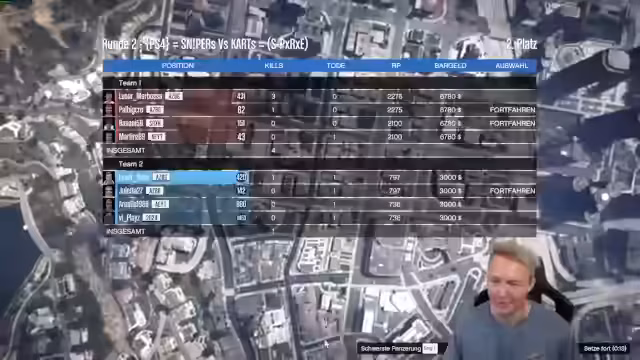 01:40:20Nach der Ankündigung von 'Snipers vs. Karts' startet die Community-Runde gegen Deko und Aris. In diesem Spielmodus fahren eine Gruppe (Go-Karts) gegen die andere (Scharfschützen). Die Kart-Fahrer haben den Nachteil, offene Ziele zu sein, während die Schützen Nachteile durch schlechte Sicht und Fahrzeugschäden haben. Besonders Julietta sticht als starke Schützin hervor. Nach einer knappen Niederlage der Karts wird die ungleiche Balance des Modus diskutiert. Es folgt die Organisation einer nächsten Runde mit neuen Teilnehmern wie Magma, wobei technische Probleme und Einladungen über Discord besprochen werden.