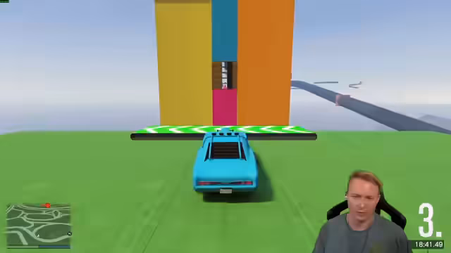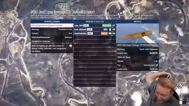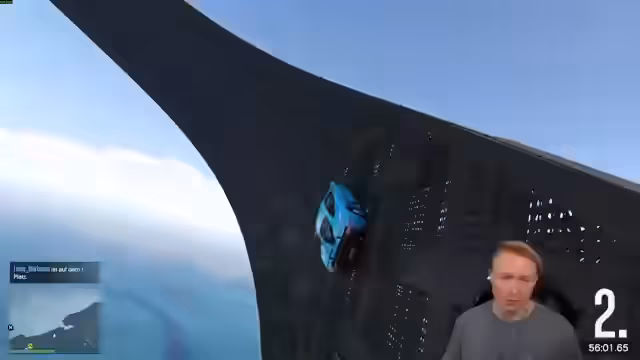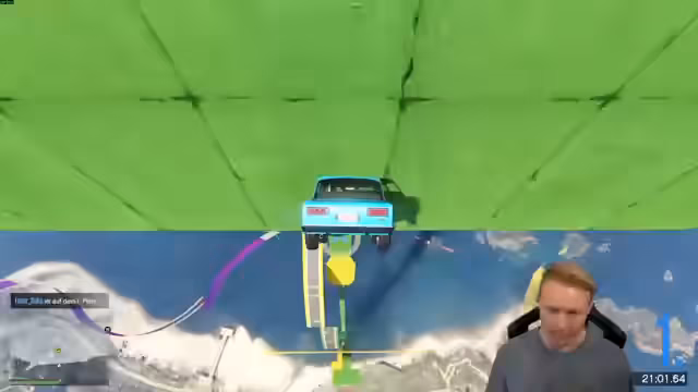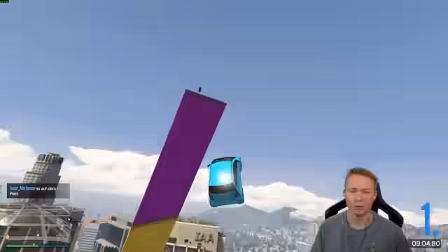 03:49:21Zwischen 13761 und 14437 widmet sich der Streamer hauptsächlich dem Spielen eines selbstgebauten GTA 5-Maps. Der Fokus liegt auf dem Test verschiedener Fahrzeuge, wie eines Flugzeugs, und der Navigation durch enge Passagen und präzise Sprünge. Dabei kommt es zu häufigen Kollisionen und Missverständnissen über die korrekte Route, insbesondere bei einer Kaskade von "Warhead"-Wechseln, bei denen der Streamer und ein Mitspieler sich gegenseitig behindern.