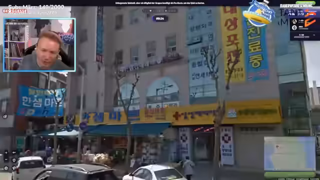 02:13:13Nachdem die PC-Probleme für den Moment gelöst scheinen, wechselt der Streamer das Thema und startet eine Runde des Geografie-Quizzes 'GeoGässer'. Hier müssen Teilnehmer anhand von Bildern Orte identifizieren. Die Runde wird schnell zu einem Publikumserfolg, bei dem viele Zuschauer durch schnelle Google-Suchen punkten. Der Streamer selbst hat dabei erhebliche Schwierigkeiten, während das Publikum eine beeindruckende Geografie-Kenntnisse demonstriert.