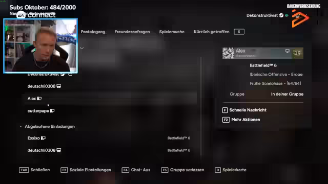 00:04:46Der Stream beginnt mit einer herzlichen Begrüßung an die Zuschauer, Muchachos genannt. Der Streamer kündigt an, mit einer Reaktion zu starten und danach Battlefield zu spielen, Rainbow Six Siege oder Arena Breakout Infinite sind ebenfalls als mögliche Spiele genannt. Neben den Ankündigungen werden auch längjährige Follower und neue Subs im Rahmen des Streams gewürdigt, was die Gemeinschaft auf dem Kanal unterstreicht. Der Fokus des Streams liegt auf gemütlichem Gaming und der Interaktion mit der Community.
