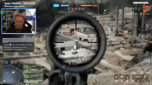 02:59:08Der Streamer wechselt zum Snipen und stellt Einstellungen für das Zeroing ein, feiert aber nur kurz einen Rekord von 404 Metern, bevor er über Unauserglichenheit im Spiel klagt. Gegner benötigen oft zu viele Treffer, während er selbst sofort stirbt. Trotz Fehlern wie falschen Waffen-Settings und fehlenden Revives durch Teammitglieder setzt er das Snipen fort, analysiert die Map-Strategien und bemerkt, dass Sniper auf den aktuellen Maps schwierig sind.