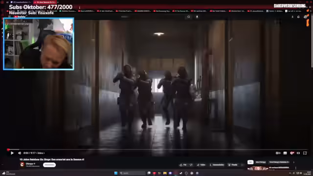 00:47:04Die Vorstellung der Rainbow Six Season 4 wird vertieft. Der Streamer spekuliert über die mögliche neue Waffe, die eine neue Pumpgun oder ein zweites Sturmgewehr für Verteidiger sein könnte. Zudem erwähnt er die zwei Map-Modernisierungen für Skyscraper und Theme Park und eine mögliche Rückkehr des altenRanked-Matchmaking-Systems. Er ist gespannt, wie Ubisoft die Probleme mit Smurf-Accounts und unausgeglichenen Spielen in der neuen Season angehen wird.