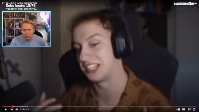 02:11:24Beim Kommentieren des Videoclips über den Klingelstreich bei Monte geht der Streamer auf die rechtlichen und persönlichen Aspekte des Vorfalls ein. Er erwähnt, dass sein Verlangen, sich mit einem „Meinungsverstärker“ zur Wehr zu setzen, im rechtlich nicht zulässigen Rahmen läge. Die legitime Selbstverteidigung könne erst bei einer physischen Attacke greifen. Zudem diskutiert er die finanzielle Seite eines Schmerzensgeldes, das sich am Einkommen des Geschädigten orientiert, und humoristisch, bei welchem Streamer sich ein solches Vorfall finanziell mehr lohnen würde.