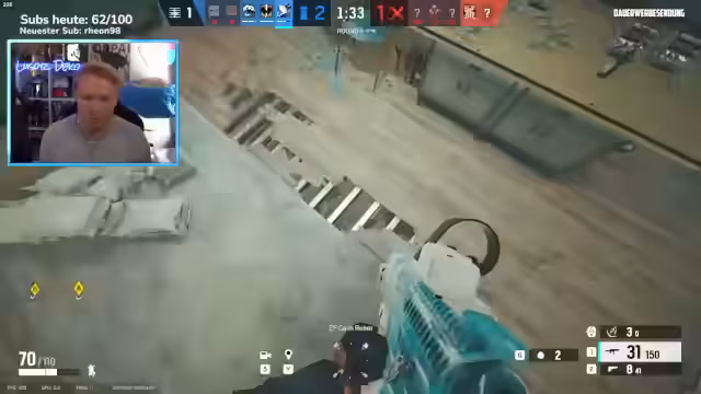 00:33:15Der Streamer wechselt das Thema und gibt Ratschläge, um in Rainbow Six eine positive Mentalität zu bewahren. Er rät, den Chat auszuschalten und den Voice-Chat freundlich zu nutzen, um positive Vibes zu fördern. Er selbst kämpft in dieser Season gegen Champion-Spieler und hat eine niedrige Winrate, was er auf ein unausgeglichenes Matchmaking zurückführt. Er lädt Zuschauer zum gemeinsamen Zocken ein, schickt ihnen Freundschaftsanfragen auf Uplay und betont, dass alle Ränge, auch Silber oder Bronze, zum Mitmachen eingeladen sind. Er startet daraufhin ein Ranked-Game mit einer zusammengewürfelten Gruppe aus verschiedenen Rängen.