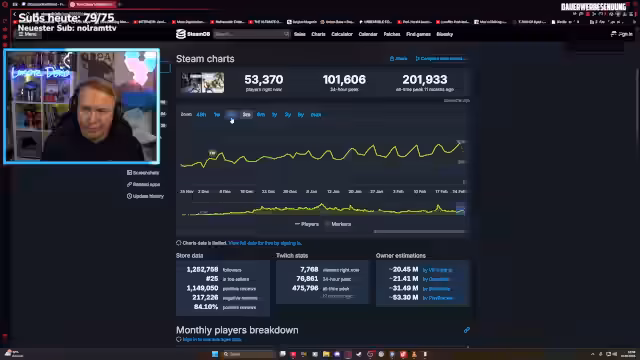 02:49:01Der Streamer befasst sich intensiv mit der Rückkehr von Rainbow Six Siege X und hebt den signifikanten Anstieg der Spielerzahlen auf Steam hervor. Er ist optimistisch, dass die Tendenz durch die neue Version weiter ansteigt und ruft gezielt Havoc und Bollek auf, nach langer Zeit wieder mitzuspielen. Nach anfänglicher Ablehnung scheint sich Havoc aber doch auf einen gemeinsamen Spielabend einzulassen. Der Streamer betont seine Freude, nach drei Jahren wieder Mitspieler finden zu können und sieht dies als Ehre an.