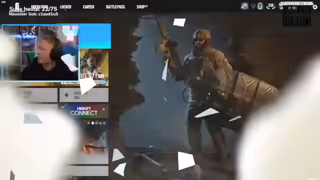 01:07:00Nach langer Zeit des Problems, keine Mitspieler einladen zu können, scheint sich der Bug im Ubisoft Launcher behoben zu haben. Der Streamer ist sehr erleichtert und startet sofort Ranked-Runden mit Zuschauern. Das Spielprinzip wird erklärt: nach jeder Runde werden die Mitspieler ausgetauscht, sodass viele Zuschauer die Chance haben, mitzuspielen. Eine erste Runde mit gemischten Rängen wird gestartet.