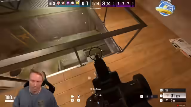 02:14:28Das Loser-Team spielt Rainbow Six Siege gegen den Gegner 'Team Ente'. Das Match verlägt intensiv und strategisch, mit Fokus auf Operator wie Termite und Ace. Es kommt zu knappen Situationen, engen Kämpfen in Zonen wie dem 'Bunker' und 'Big Tower'. Trotz guter Einzelleistungen gelingt es dem Team nicht, das Spiel klar für sich zu entscheiden.
