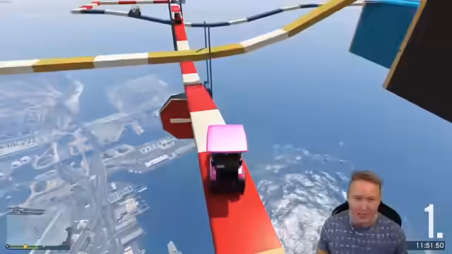 00:24:31Das Hauptspiel des Streams ist GTA Online, mit einer spezialisierten Parkour-Map. Der Streamer und seine Squad-Mitglieder Jeremy, Nugi und Deko versuchen, die anspruchsvollen Parcours zu meistern. Die Map enthält wiederholte Elemente, was als nicht sehr gelungen empfunden wird. Insbesondere der Teil, der vom Tor runterzufahren ist, wird als besonders schwierig und Glücksspiel eingestuft, während andere Teile mehr Skill verlangen. Der Streamer bewundert auch die Fahrzeug-Handling-Eigenschaften in der Map.