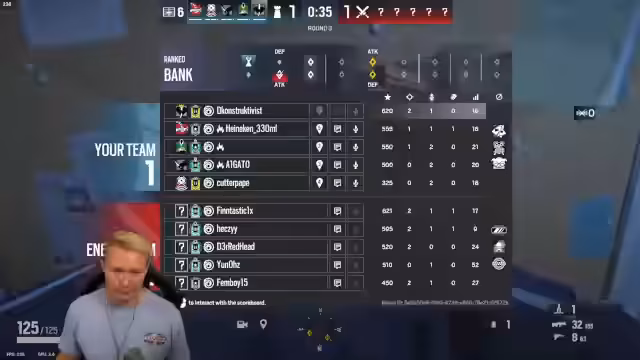 04:25:41Die angekündigte kurze Runde in Rainbow Six Siege beginnt. Auf der Map Coastline wird mit einem Triple Squad zusammengespielt, bestehend aus Jeremy und Petcat. Kurz vor Spielstart werden technische Anpassungen am Display vorgenommen, um das Seitenverhältnis auf 16:9 umzustellen. Der Fokus liegt auf koordinierten Aktionen und dem Abhalten der Gegner, wobei auch erste technische Ungenauigkeiten im Voice-Chat bemerkt werden.