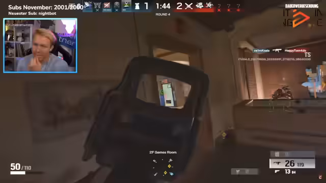 02:25:14Nachdem der Streamer seinen Sohn abgeholt hat, kündigt er an, dass er vorerst alleine streamen wird, da ein geplanter Co-Stream mit Xander in Arc Raiders nicht zustande kommt, da Xander noch nicht online ist. Stattdessen wird Rainbow Six Siege gespielt, um den Battle Pass zu grinden. Der Streamer ist auf Level 90 und hat noch 10 Level bis zum Ende der Season, die in 8 Tagen endet. Er ist zuversichtlich, dies noch zu schaffen. Es wird auch erwähnt, dass er gerne wieder in Platin aufsteigen möchte, aktuell aber auf Gold 2 ist und in den letzten 12 Spielen nur zwei Siege erzielt hat. Zuschauer sind eingeladen, mitzuspielen, und es werden Freundschaftsanfragen akzeptiert. Die Diskussion über die deutsche Synchronisation wird fortgesetzt, wobei die Qualität der deutschen Synchronsprecher gelobt wird.