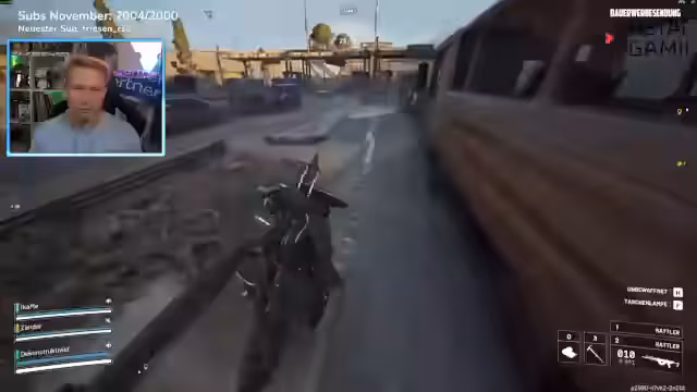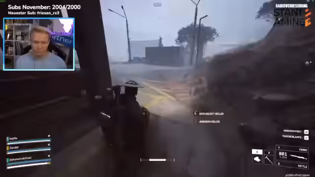05:38:52Der Streamer spielt Arc Raiders live und kommentiert das Gameplay intensiv. Er sammelt Ressourcen wie Gummi- und Metallteile, führt Quests durch und kämpft gegen Gegner. Im Gespräch mit dem Chat wird die Spawn-Logik des Spiels erklärt: Spieler spawnen, bis ein Limit von 30 Personen pro Runde erreicht ist. Er analysiert auch die Performance verschiedener Waffen wie der Osprey und der Ferro.