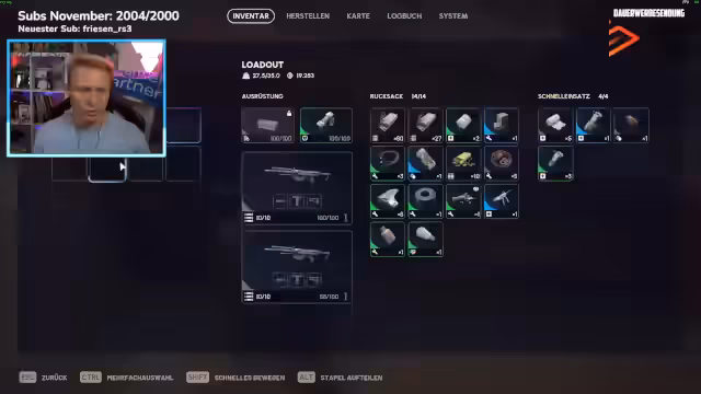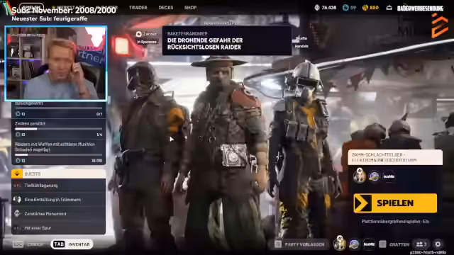 08:02:49Der Streamer plant, nach dem Stream einkaufen zu gehen und diskutiert seine Präferenzen zwischen Rewe und Edeka. Er bevorzugt Edeka, da sein lokaler Rewe als unangenehm empfunden wird, mit Berichten über Diebstähle und ein allgemeines Unwohlsein. Die Spieler bereiten sich auf eine Nachtmission in der Gewitterzone vor, um bestimmte Gegenstände zu finden und Quests abzuschließen. Es wird eine Doku über einen Spieler erwähnt, der einen Elektroschocker implantiert bekam, um Tics zu unterdrücken. Die Spieler diskutieren über das Looten von Core-Blueprints und die Spawnrate dieser Gegenstände. Sie sind im Summengriss unterwegs, wo es viele Gegner gibt, und müssen vorsichtig sein. Es wird beschlossen, einen Rocketeer zu erledigen, da dies eine Trial ist, und die Wolfpack-Fähigkeit zu nutzen. Während des Kampfes kommt es zu Schwierigkeiten, da die Spieler zu früh angreifen und kein ausreichendes Cover haben. Es wird versucht, sich neu zu positionieren und die Gegner auszuschalten.