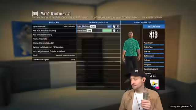 00:29:19Der Streamer beginnt eine GTA-Spielrunde mit einer Randomizer-Map von Skyfall, die er als besonders spannend und herausfordernd beschreibt. Während des Spiels underlines er die Random-Natur der Map, bei der jedes Mal unterschiedliche Fahrzeuge und Herausforderungen erscheinen. Er interagiert intensiv mit dem Mitspieler Aris, gibt Tipps und kommentiert seine eigenen Fahrmanöver humorvoll.