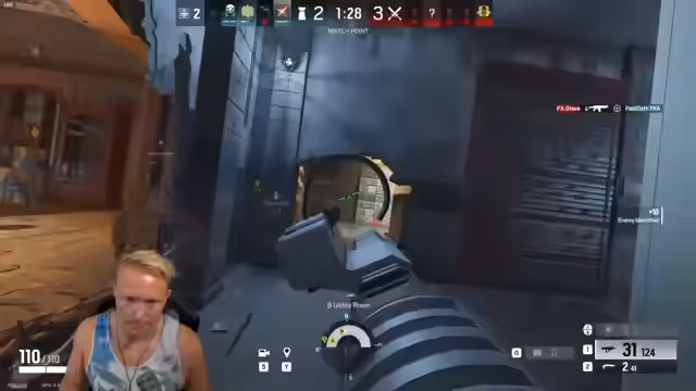 00:45:29Die Rainbow-Six-Siege-Runde startet mit dem Streamer und seinem Team. Der Streamer beschreibt die Spielsituation, die Operators und die taktischen Entscheidungen. Der Fokus liegt auf der Kommunikation im Team und der Anpassung der Strategie basierend auf der Gegnerkonstellation. Es werden verschiedene Pläne und Angriffsmethoden diskutiert.