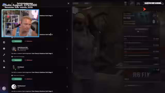 01:59:44Der Streamer bittet Zuschauer, die mit Rainbow Six spielen wollen, ihm eine Spieleinladung zu schicken, da er Platz machen möchte. Er geht kurz auf die Toilette und stellt sicher, dass Musik läuft, während er weg ist. Er erwähnt, dass er wieder zurückkommen wird, um mit den Spielern zu starten.
