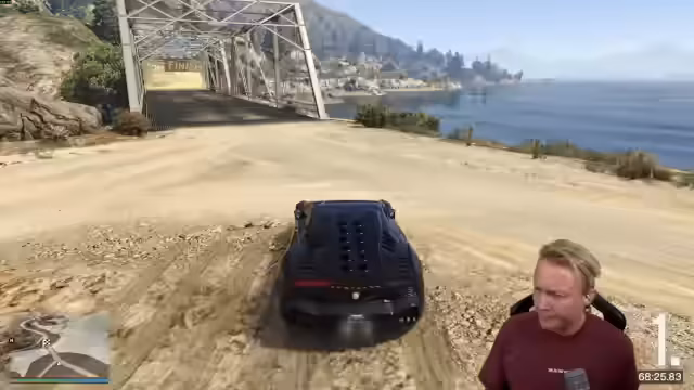 02:16:09Der Streamer versucht es mit verschiedenen Fahrzeugen, wie dem Neo, dem West 8 und dem Frex, um die Brücke zu überwinden. Er findet heraus, dass es eine unsichtbare Wand an der Brücke gibt, die den Versuch erschwert. Der Chat gibt ihm Tipps, welche Autos gut funktionieren könnten, wie den LM87 oder den Rocket Voltic. Der Streamer ist verärgert über die Schwierigkeiten und die vielen gescheiterten Versuche.