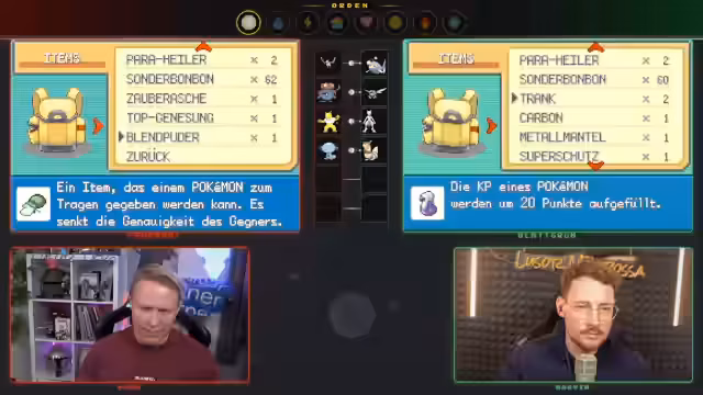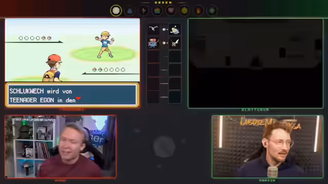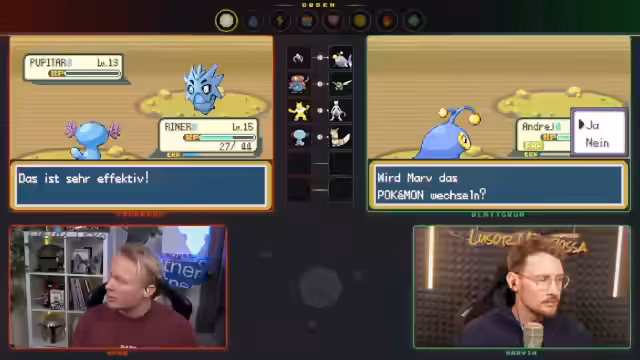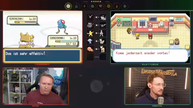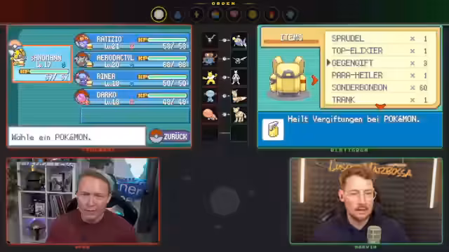 00:14:39Die Streamer kämpfen gegen verschiedene Trainer und ihre Pokémon. Dabei werden verschiedene Angriffe und Strategien diskutiert. Ein Höhepunkt ist der Kampf gegen einen Trainer mit einem Dragoran, das sehr stark ist. Die Streamer müssen ihre Pokémon wechseln und nutzen verschiedene Attacken, um Vorteile zu erzielen. Geldmangel wird zu einem Problem, da sie keine Pokébälle mehr kaufen können, ohne in ein Pokémon Center zurückzukehren.
