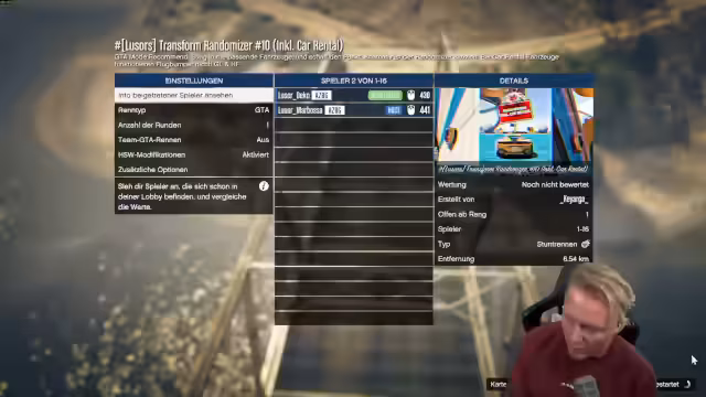 02:11:59Der Streamer startet eine Challenge in GTA, bei der er eine zufällige Transform-Map spielen muss. Die Map wurde von Jeremy in elf Stunden erstellt, und sie versuchen, die Zeit zu schlagen. Es ist eine Car-Randomizer-Map, bei der sie nur eine begrenzte Auswahl an Fahrzeugen haben. Der Streamer wählt einen Formulator, aber scheitert bei dem Versuch, die Brücke zu überwinden. Er ist frustriert über die Schwierigkeiten und den Verlust des Formulators.