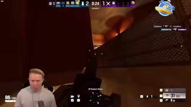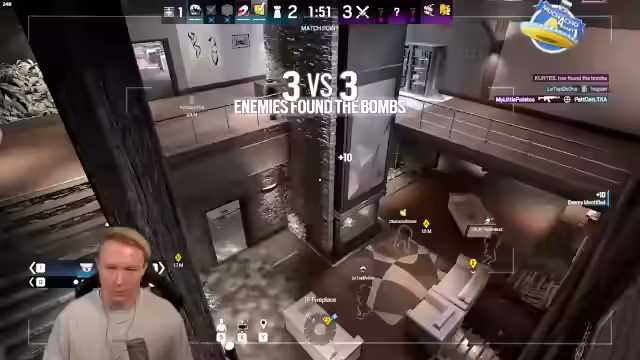 01:51:58Der Fokus verlagert sich komplett auf 'Rainbow Six Siege'. Der Streamer startet ein Ranked-Spiel mit seinen Teampartnern Mamos, Petcat und anderen auf der Map 'Kiphorst'. Das Team arbeitet gut zusammen und nutzt Cams und Calls effektiv, um die Positionen des Gegners zu kennen. Dennoch werden sie in einigen Runden von sehr gut koordinierten Gegnern überrascht, was zu knappen Niederlagen führt. Es werden einige taktische Fehler analysiert und deren Auswirkungen diskutiert.