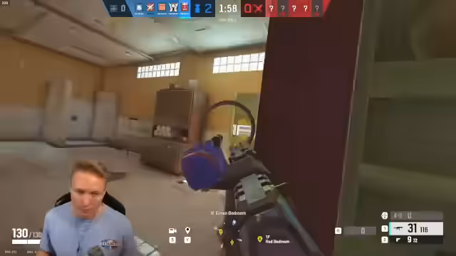 04:10:12Der Streamer startet ein Spiel von Rainbow Six Siege im Rainbow-Modus mit den Teamkollegen Mabossa und Jeremy. Es wird ein spezifischer Plan entwickelt, bei dem Mozzie eine Drohne einfangen muss, der Streamer mit Mute diese Drohne abfängt und Alibi einen Klon platziert. Die Komplexität dieses Plans führt jedoch zu mehreren Fehlern und unkoordinierten Aktionen im Team, was zu einer knappen Niederlage führt. In einer späteren Runde wird eine ähnliche Taktik mit den Operatoren Ash und Kapkan versucht, die ebenfalls fehlschlägt.