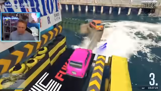00:40:44Der Stream startet WarRide mit seinen Mitstreitern Deko und Aris. Die erste Map, empfohlen von Matrixmann, ist extrem schwierig und wird auf einer Härteskala von 11 von 10 eingestuft. Während des Spiels kommt es zu Diskussionen über Fairness. Der Streamer nutzt vorgegebene Streckenabschnitte, um Hindernisse zu umgehen, was Deko als Schummen wertet, während der Streamer argumentiert, er nutze nur die vom Map-Bauer zur Verfügung gestellten Elemente. Die Rennen sind intensiv und von humorvollen wie frustrierenden Momenten geprägt.
