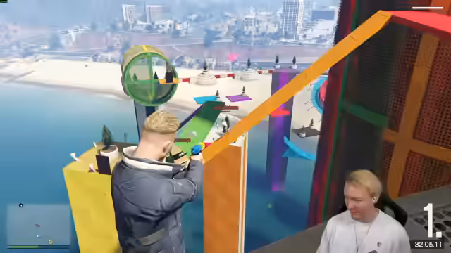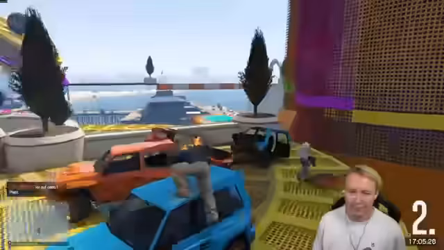 00:28:41Nach der Planungsphase startet der Streamer gemeinsam mit anderen Teilnehmern einen GTA Parkour-Challenge. Das Spiel wird gestartet und die Gruppe beginnt, einen Parcours zu bewältigen. Es kommt dabei zu diversen Missgeschicken, Unfällen und gegenseitigen 'Trollen', was zu humorvollen und chaotischen Situationen führt. Der Fokus liegt auf dem gemeinsamen Spielen und den spaßigen, wenn auch holprigen, Vorstellungen der Teilnehmer.