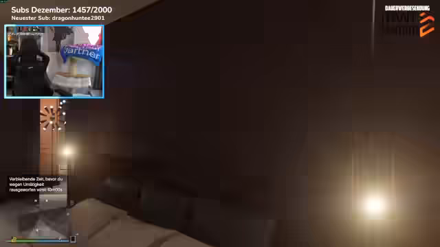 02:52:16Das Gespräch dreht sich um den geplanten Bau einer Katzenplattform. Der Streamer beschreibt sein Problem beim Aufbau, da er eine Wasserwaage zum Ausrichten benötigt und sich unsicher ist, welcher Dübeltyp für die ungewöhnlichen Wände aus Sandstein und Granit geeignet ist. Im Chat wird darüber diskutiert. Gleichzeitig sucht er für ein geplantes Rainbow Six: Siege-Spiel noch zwei weitere Mitspieler, wobei der Fokus auf noch nicht gespielten Personen liegt. Das Ziel ist ein weiteres gemeinsames Ranked-Spiel auf der Map Fortress.