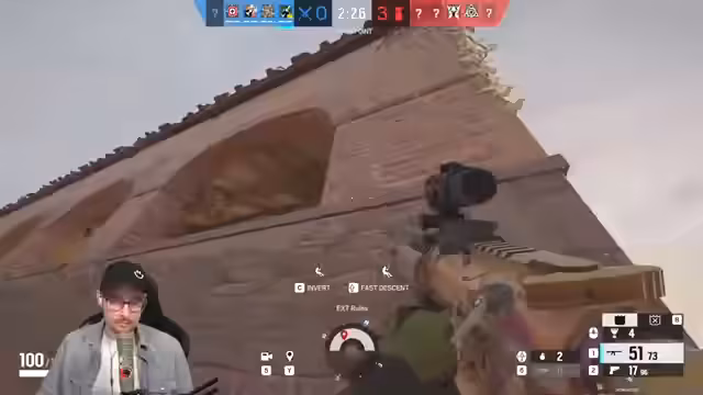 00:30:31Nach einer Pause beginnt die nächste Runde Rainbow Six Siege. Das Team, bestehend aus Paddy und Jeremy, spielt auf Villa. Der Streamer wechselt von Energy auf Saft, was er als problematisch ansieht, da viel Frucht Zucker enthalten ist. Das Spielverläuft holprig, das Team verliert Runden und der Streamer kritisiert das Fehlen von Kommunikation und strategischem Denken seiner Mitspieler, was zu einer deutlichen Niederlage von 0-4 führt.