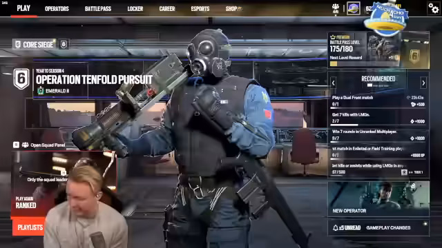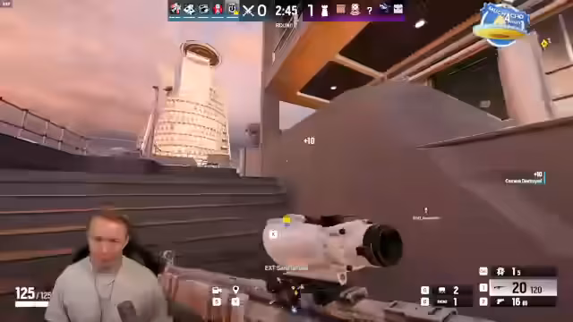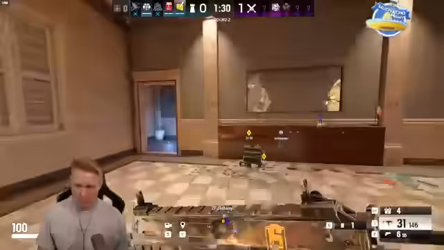 04:38:55Vor Beginn einer Runde wird bekanntgegeben, dass das Team gegen drei ehemalige Champions im Diamond 1 Rang antreten wird. Die hohe Spielstärke des Gegnerteams wird anerkannt, doch es wird auch berichtet, dass der Gegner verdächtiges Verhalten zeigt. Ein Operator scheint Schüsse abzugeben, bevor er Spieler in seinem Sichtfeld hat, was als verdächtiges „Smurfing“ oder „Cheating“ eingestuft und bei Ubisoft gemeldet wird. Das Matchmaking wird als unfair kritisiert, da das eigene Team gegen ein Team mit höherer RMR angesetzt wurde.
