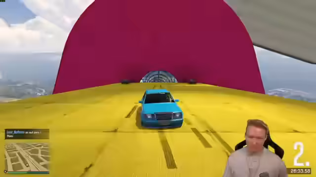01:55:19Nachdem die Map abgeschlossen wurde, stößt der Streamer im GTA-Zocken auf technische und kommunikative Probleme. Es kommt zu Missverständnissen und Verwirrung über das Ziel des gemeinsamen Spiels. Der Streamer versucht, die Situation zu klären, muss aber feststellen, dass eine Abstimmung der Aktionen mit seinem Mitspieler fehlt, was das gemeinsame Fortkommen blockiert.